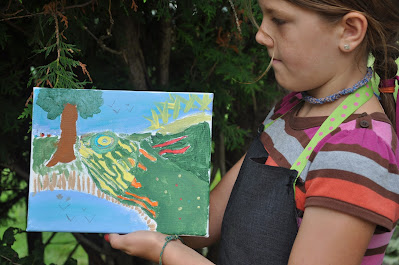 Since two kids were doing essentially the same painting, I flipped them while tracing so they would face one another for display.