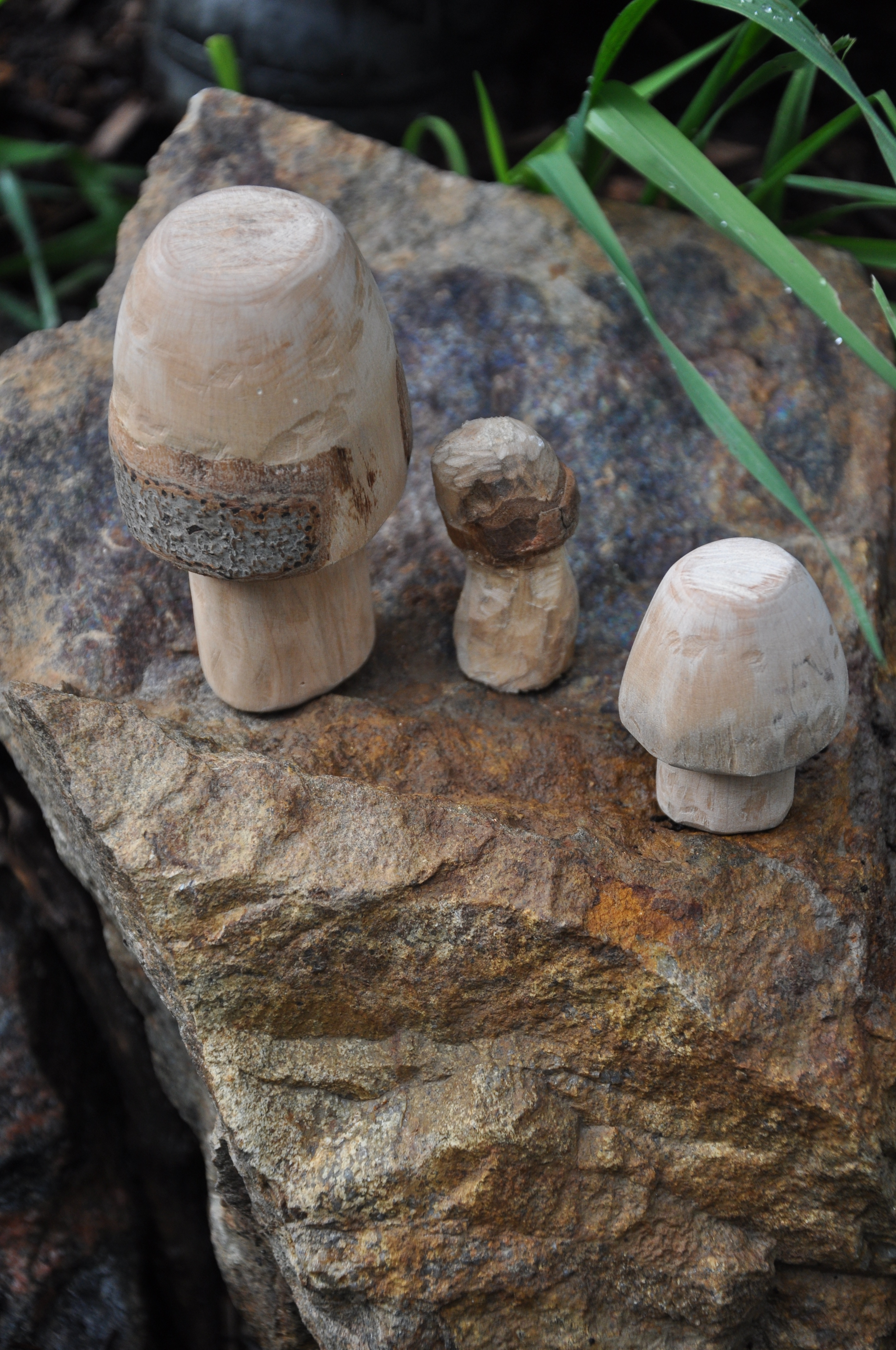 Some of them have decent enough carving knives, plus the skill to continue using the knife to shave the mushroom cap into shape. However, Mr. M is a big fan of machines, so he set off for the barn to sand his work into shape.